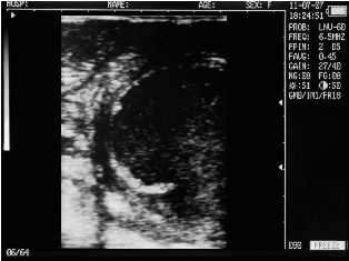 Ultrasound images of cows reproductive system, generated by a scanner Sonovet with rectal linear transducer.