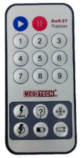 The remote communicates with the trainer via a IR window located next to the PADs port. Next to the IR window is a status indicator LED, which flashes when a correct command is received. The LED status indicator blinks continuously when a scenario has been paused. See the diagram and descriptions below