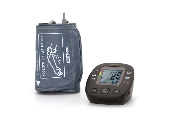MD05X Blood Pressure Monitor, Deluxe High-Density Polyethylene Housing Intelligent Automatic Pressing WHO Display USB Micro Power Source Large LCD Display Memory: 2User x99 Record Voice transmission Measure pulse and detect arrhythmia. One