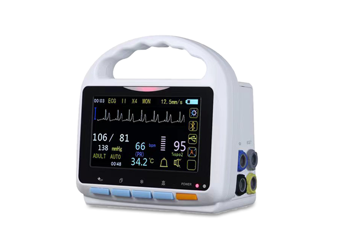 High-resolution 8-colour TFT display 6 parameters: ECG, Respiration, NIBP, SpO2, TEMP, Lightweight, compact and portable Built-in rechargeable lithium battery Unique human voice alarm Multiple screen layouts: standard, large font, trend table