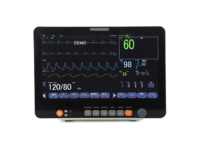 Modular patient monitor 12.1 inch TFT color screen with touch screen. Monitoring ECG, SP02, NIBP, RESP, 2- TEMP, PR as standard parameters, as well as 2-IBP, ETC02 and thermal printer